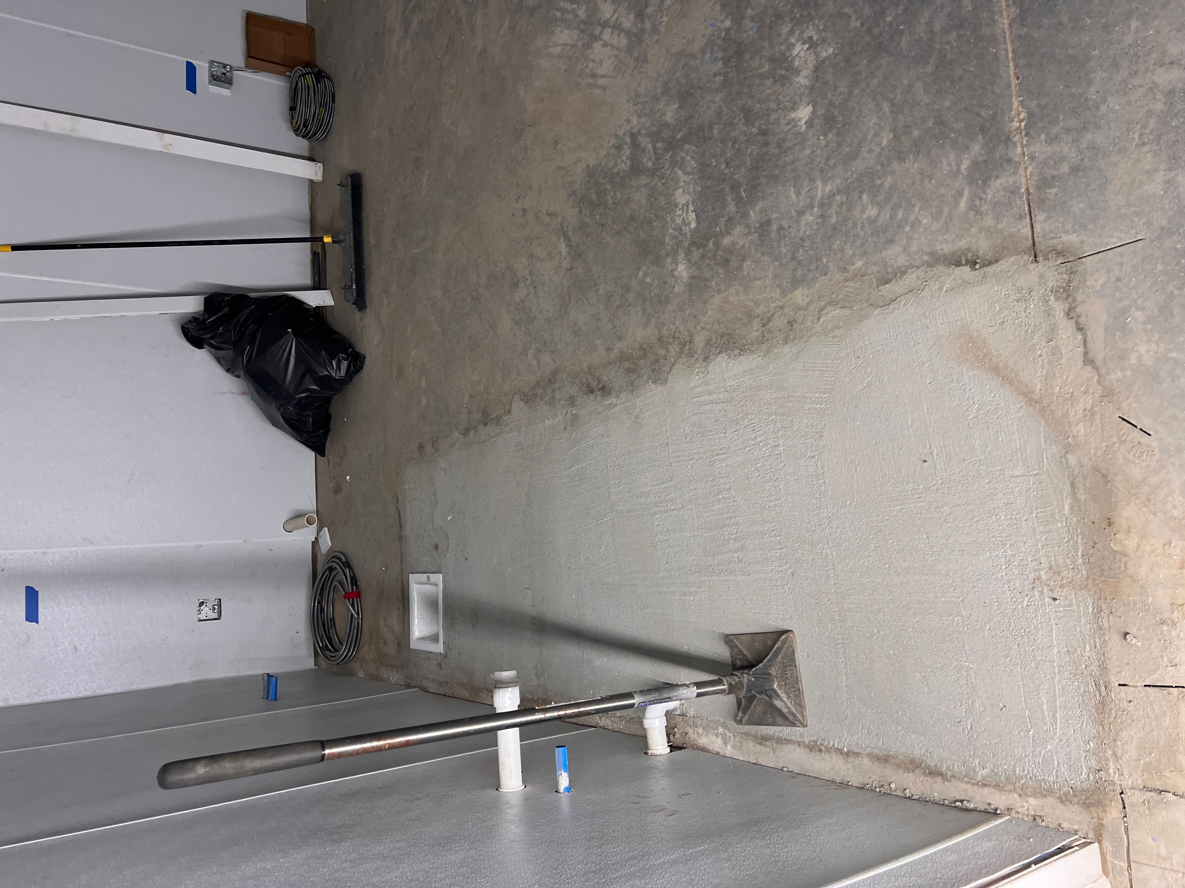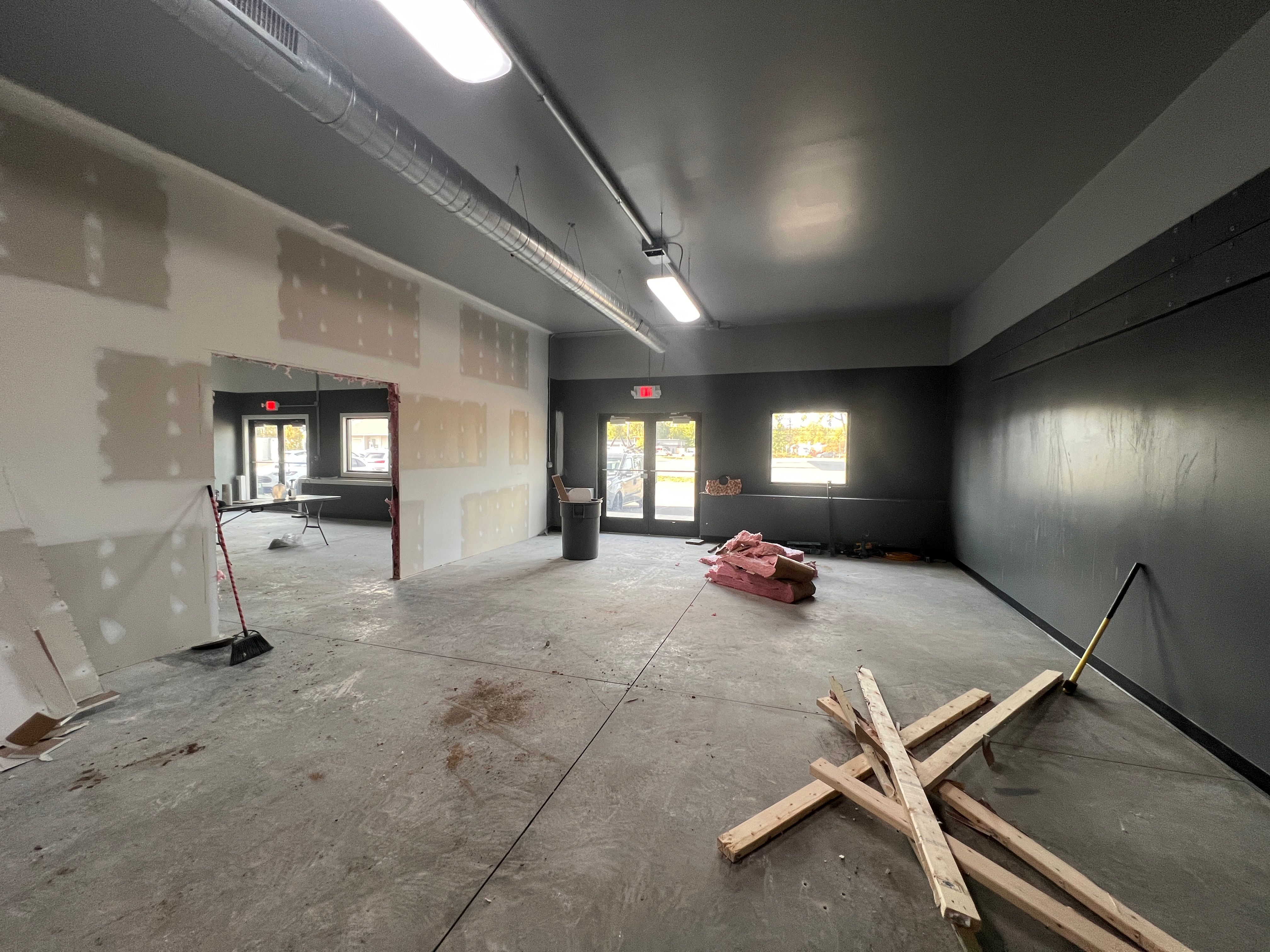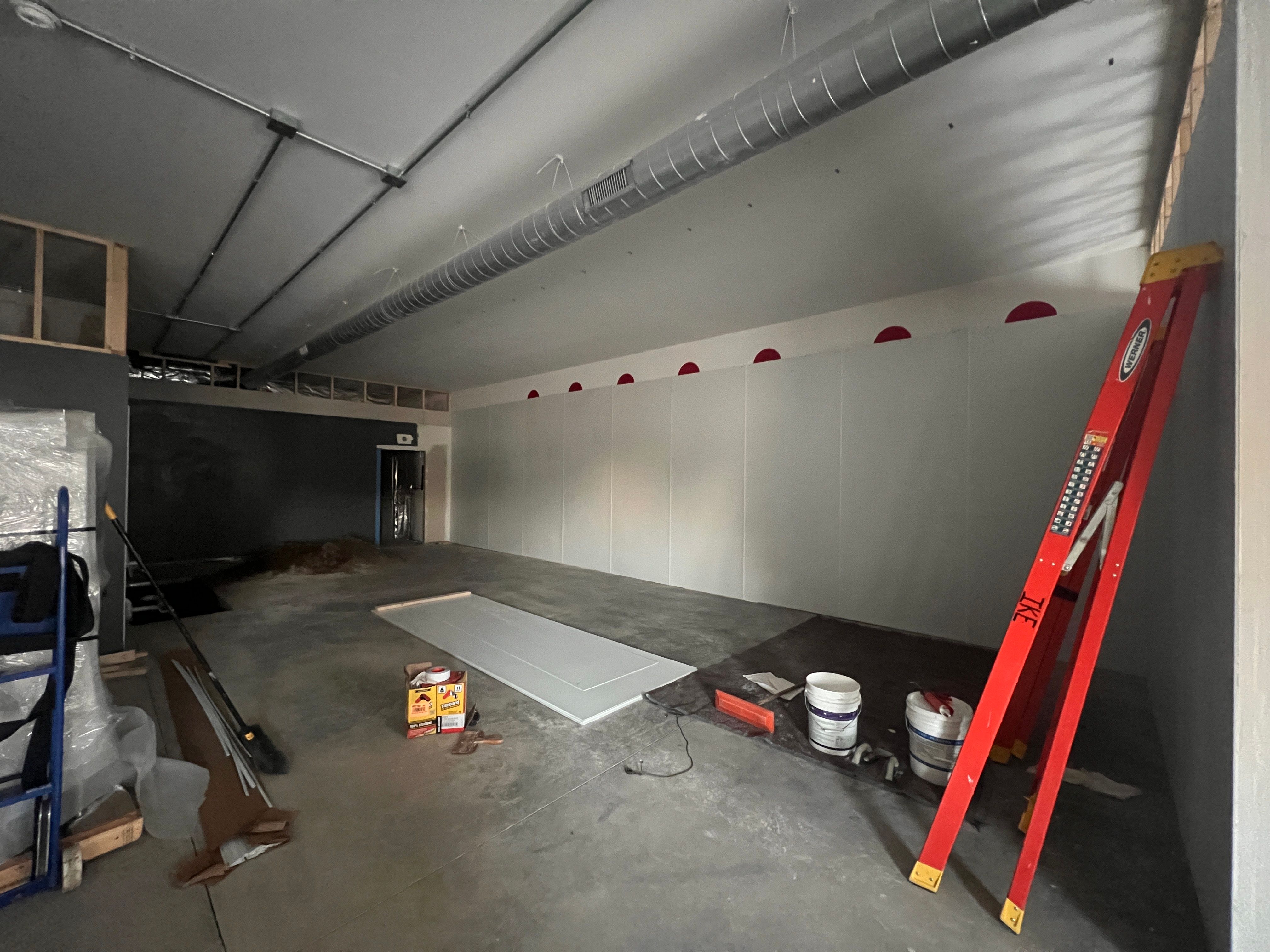 We are making progress! Walls are built, doors and windows are cut out and electrical is being roughed in. It is starting to resemble the drawings! We even got the kitchen wall panels up- yessss! Our door decals and Coming Soon window panels are up- they even have a QR code to easily scan and get up-to-date updates. Thanks for following us along this journey of building Leah's Cakery Uptown location.